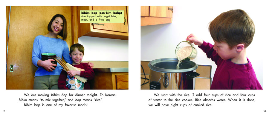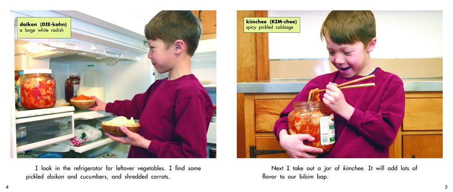 Follow along step-by-step as a young boy and his mother make a Korean dish, Bibim bap, for the whole family to enjoy